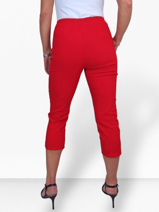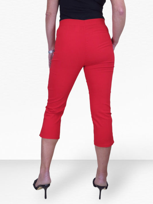 Women's Pull On Elasticated Waist Cropped Trousers Red