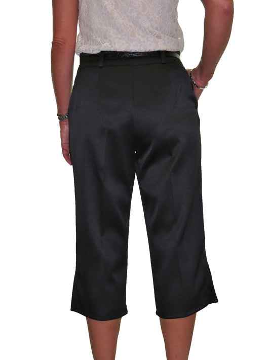 Slim Stretch Denim 3/4 Crops with Gold Button Detail Black