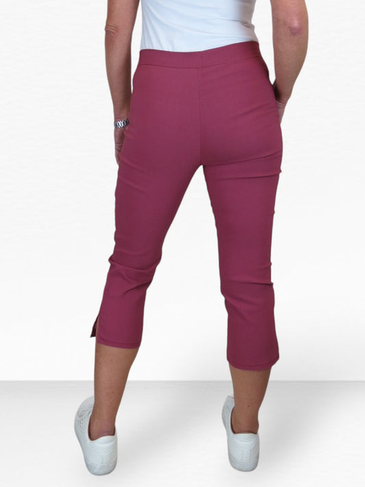 High Waisted Cropped Skinny Pedal Pushers Trousers Deep Rose