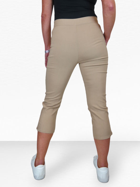 High Waisted Cropped Skinny Pedal Pushers Trousers Beige
