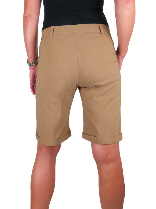 Ladies Above The Knee Stretch Shorts Camel Beige