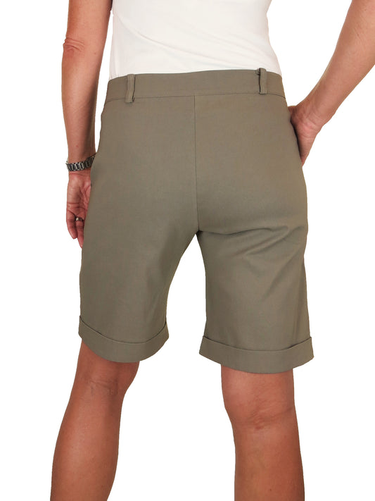 Ladies Above The Knee Stretch Shorts Khaki Green