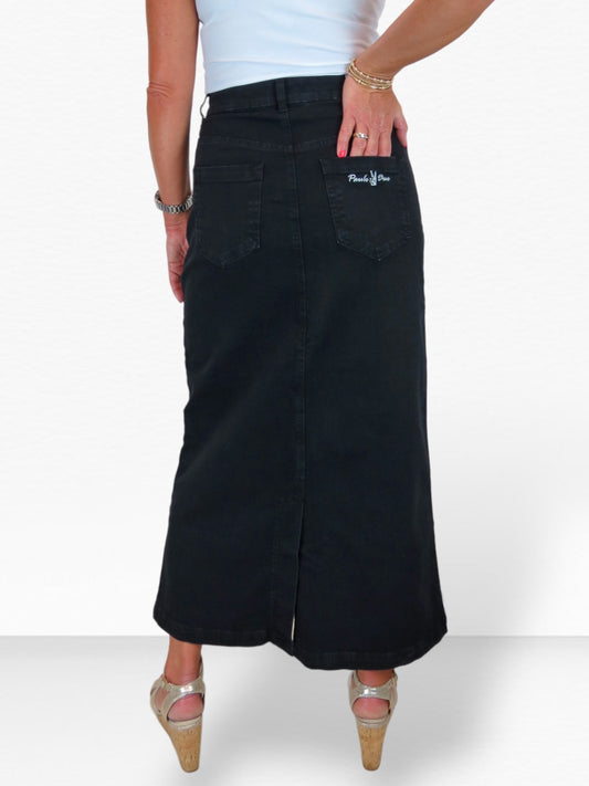 Sold outStretch Denim Jeans Maxi Skirt Black