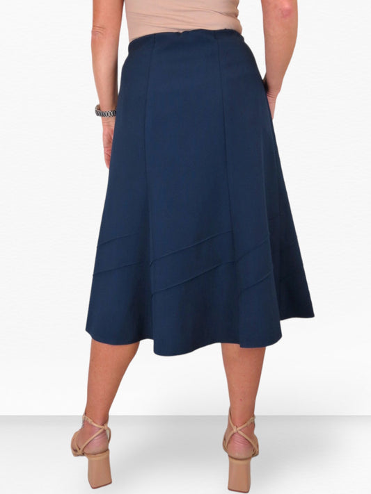 Smart Fully Lined A Line Skirt Elasticated Waist 30" Long Navy Blue