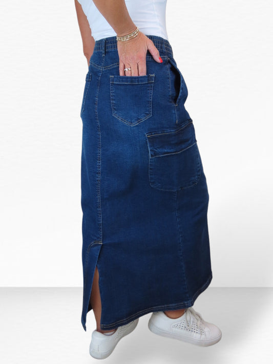 Women's Cargo Maxi Skirt Dark Blue Faded