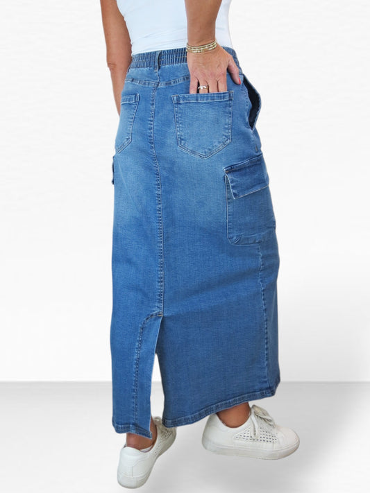 Women's Cargo Maxi Skirt Mid Blue Faded