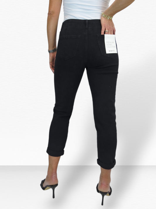 Slim Stretch Denim 3/4 Crops with Gold Button Detail Black