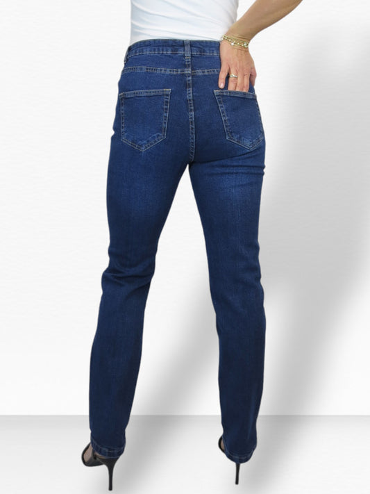 Women's Straight Leg Stretch Denim Jeans Smooth Indigo