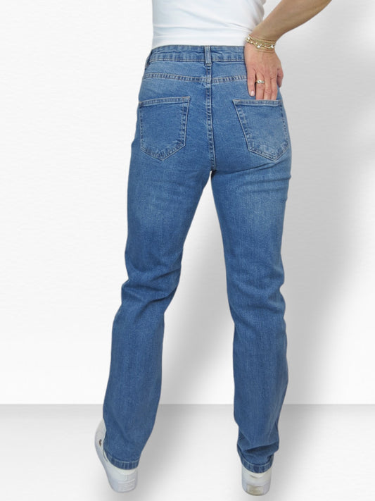 Women's Straight Leg Stretch Denim Jeans Mid Blue Faded