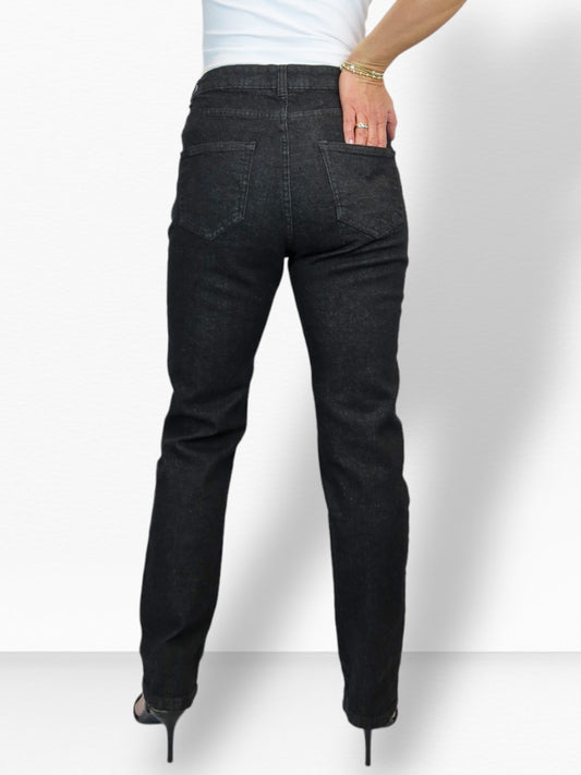 Women's Straight Leg Stretch Denim Jeans Black Soft Wash