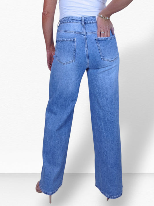 Womens High Waist Wide Leg Denim Jeans