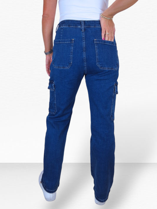 Women's Denim Cargo Pants Mid Blue
