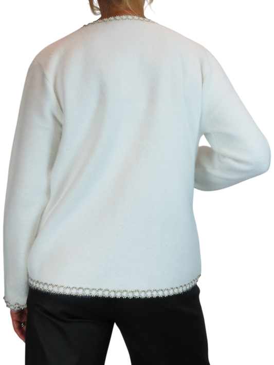 Soft Knitted Jacket with Gold & Pearl Trim Cream