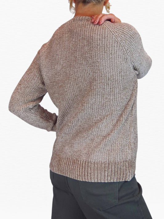 Long Sleeve Chenille Crew Neck Jumper Tan