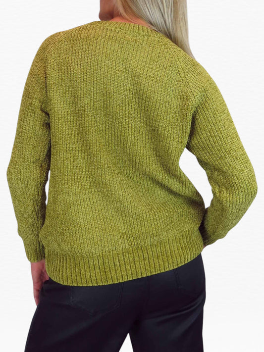 Long Sleeve Chenille Crew Neck Jumper Lime Green