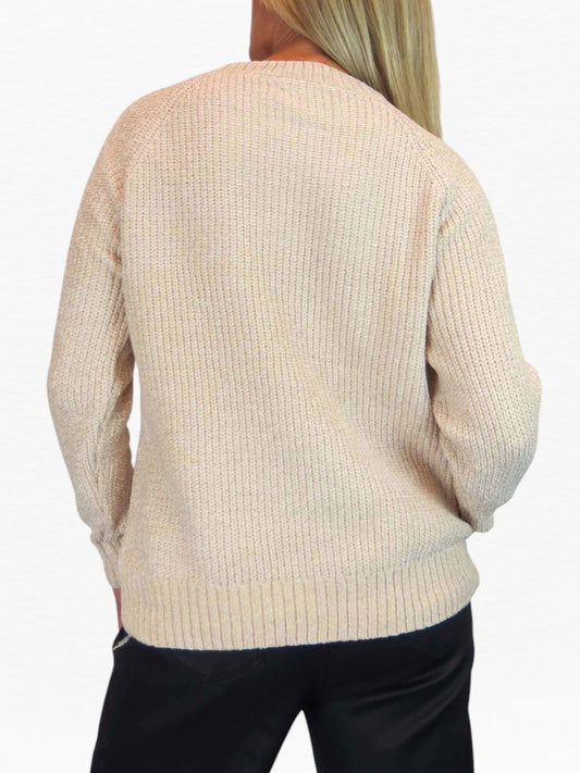 Long Sleeve Chenille Crew Neck Jumper Beige