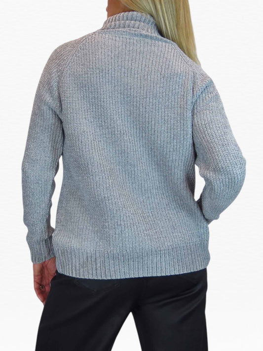 Long Sleeve Chenille Roll Neck Jumper Grey