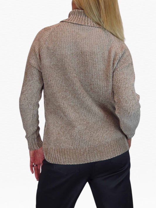 Long Sleeve Chenille Roll Neck Jumper Tan
