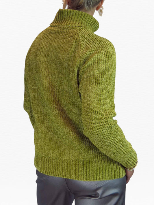 Long Sleeve Chenille Roll Neck Jumper Lime Green