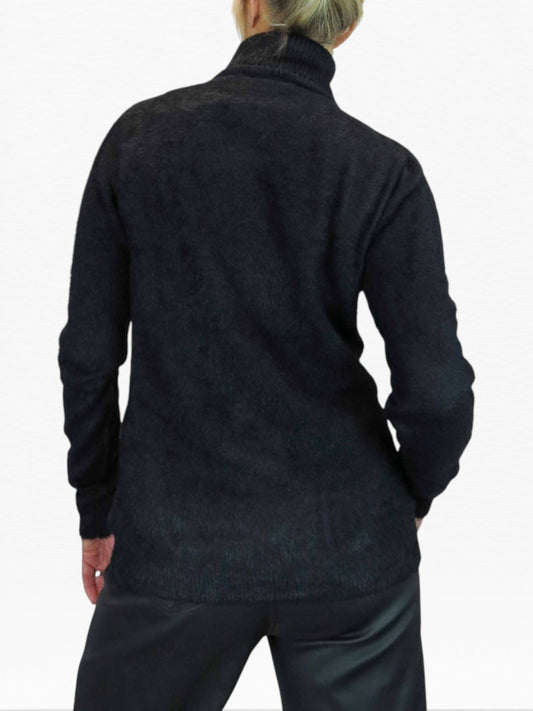 Long Sleeve Roll Neck Jumper Fluffy Knit Black