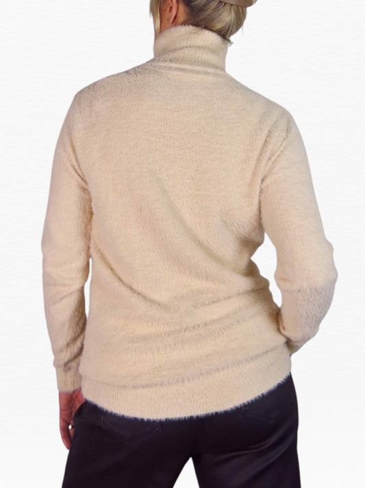 Long Sleeve Roll Neck Jumper Fluffy Knit Beige