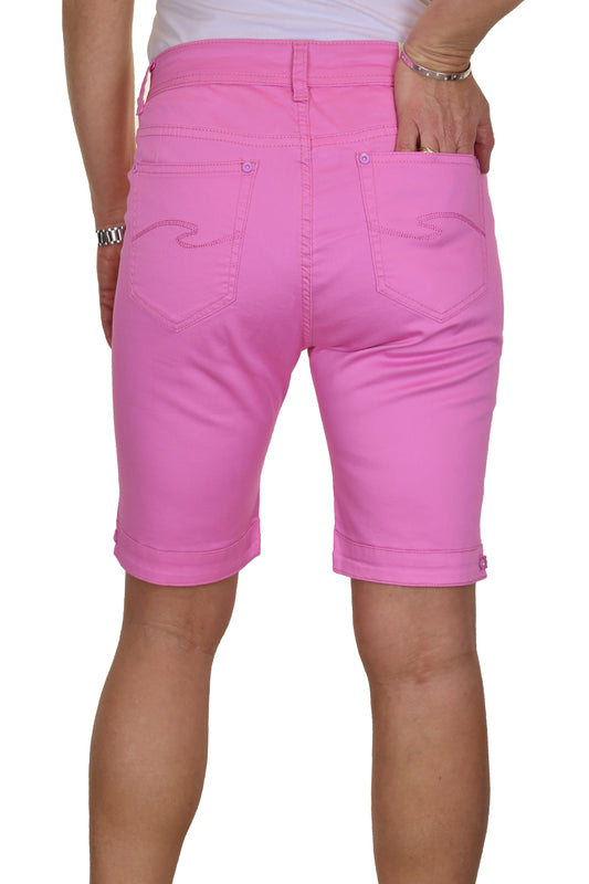Stretch Diamante Cuff Chino Sheen Jeans Shorts Deep Pink