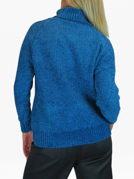 Long Sleeve Chenille Roll Neck Jumper Blue