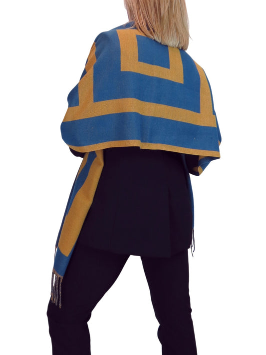 Wool Blend Geometric Design Scarf Teal/Tangerine