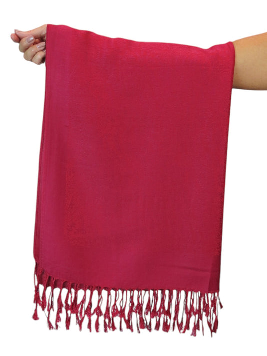 Paisley Jacquard Fine Pashmina Shawl Wrap Deep Red