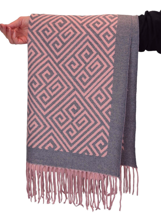 Soft Cashmere Pashmina Blanket Shawl Oversized Scarf Pink/Grey
