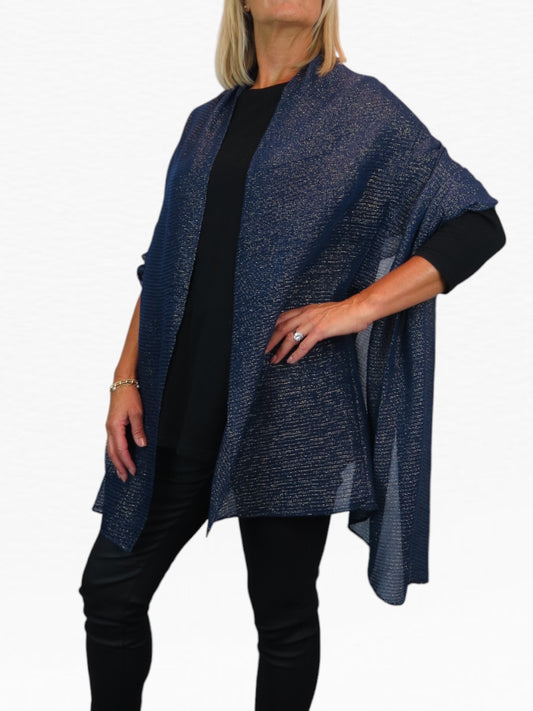 Golden Shimmer Evening Shawl With Pleated Crinkle Scarf Navy Blue