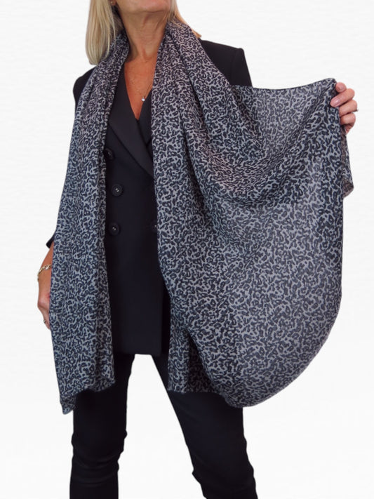 Leopard Spot Print Lightweight Shawl Scarf Grey