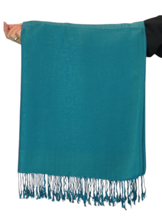 Paisley Jacquard Fine Pashmina Shawl Wrap Teal Green
