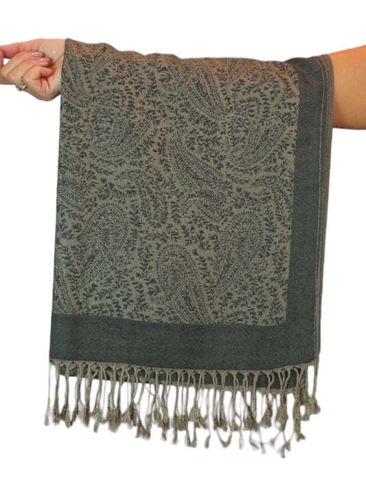 Paisley Jacquard Fine Pashmina Shawl Wrap Black Bronze