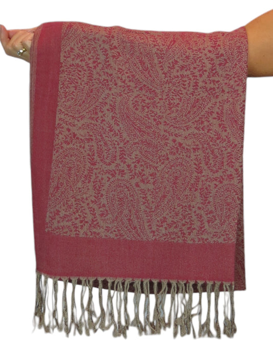 Paisley Jacquard Fine Pashmina Shawl Wrap Red Beige