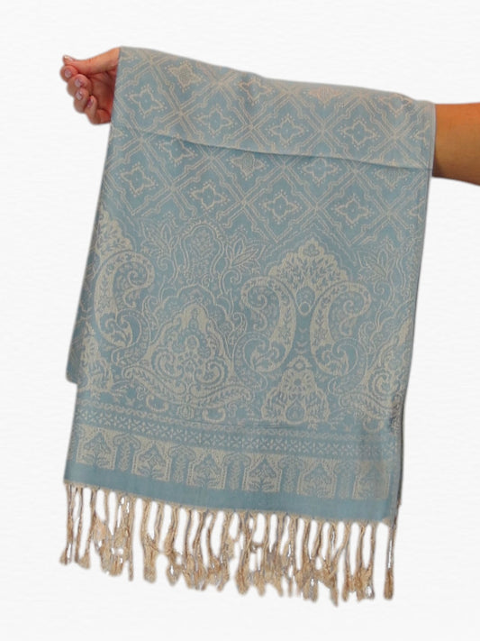 Persian Jacquard Design Pashmina Shawl Wrap Duck Egg Blue