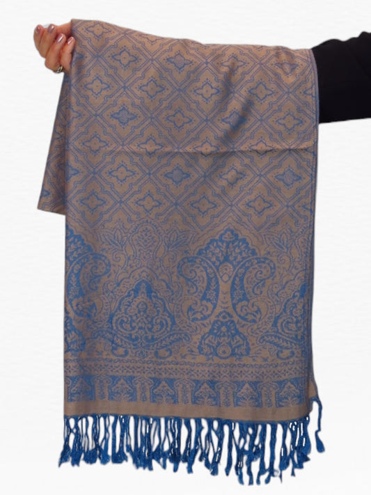 Persian Jacquard Design Pashmina Shawl Wrap Blue