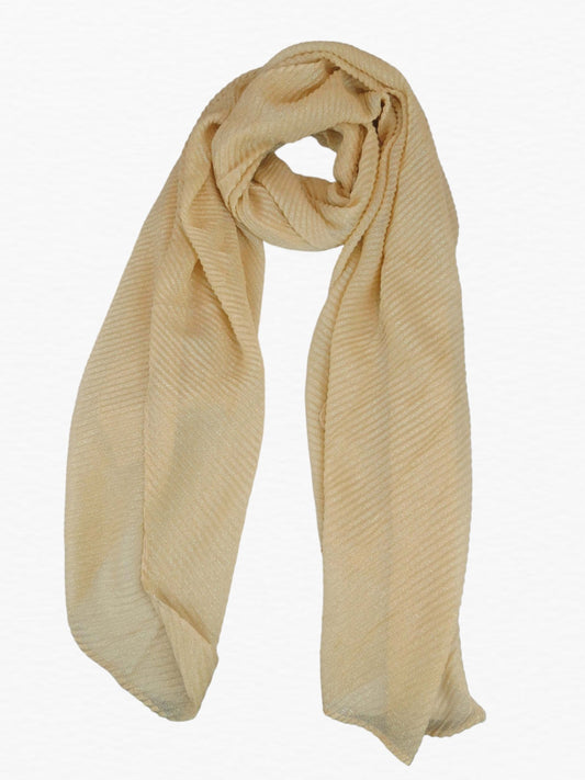 Golden Shimmer Evening Shawl With Pleated Crinkle Scarf Golden Beige