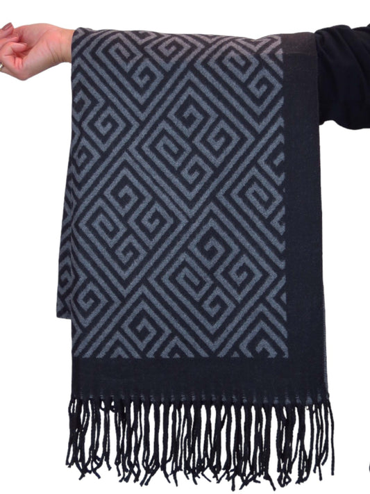 Soft Cashmere Pashmina Blanket Shawl Oversized Scarf Black/Grey