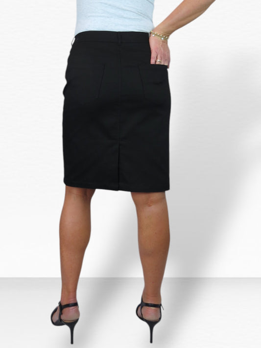 Women's Knee Length Stretch Chino Pencil Skirt Black