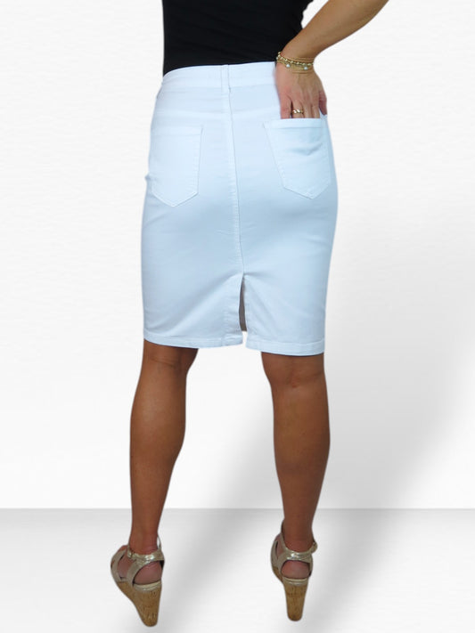 Women's Knee Length Stretch Chino Pencil Skirt White