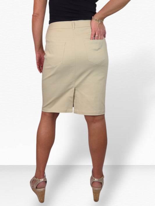 Women's Knee Length Stretch Chino Pencil Skirt Beige