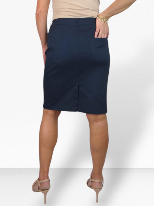 Women's Knee Length Stretch Chino Pencil Skirt Navy Blue