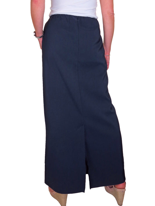 Smart Elasticated Waist Loose Fit Maxi Pencil Skirt Navy Blue