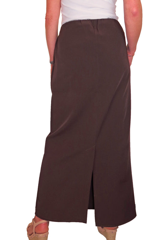 Elasticated Waist Loose Fit Maxi Pencil Skirt Brown