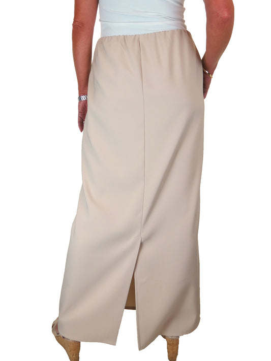 Smart Elasticated Waist Loose Fit Maxi Pencil Skirt Beige