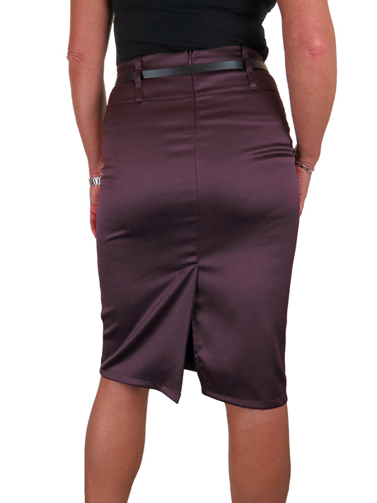 Stretch Satin Pencil Skirt Satin Deep Purple