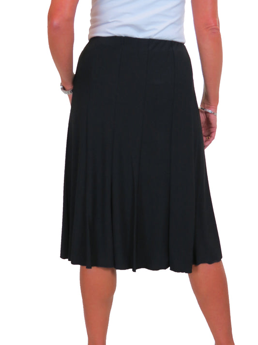 Smart Lined Stretch Below Knee Flare Skirt Black