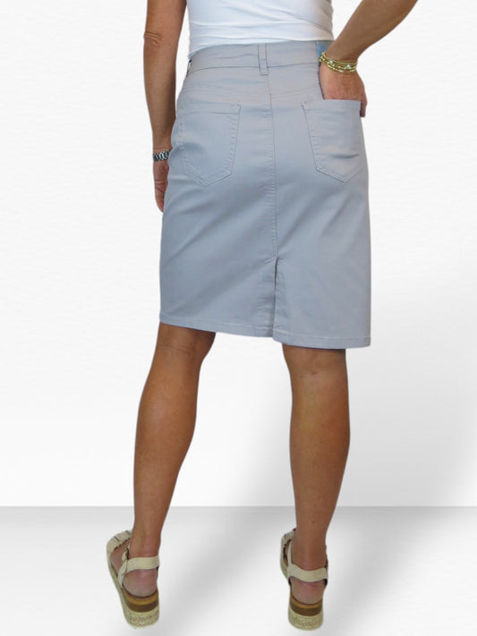 Women's Knee Length Stretch Chino Pencil Skirt Silver Grey
