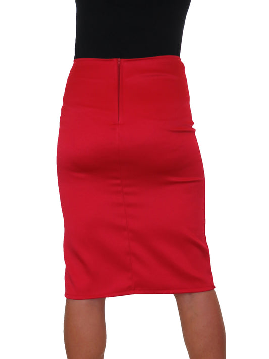 Women's Smart Thigh Split Bodycon Satin Skirt Red